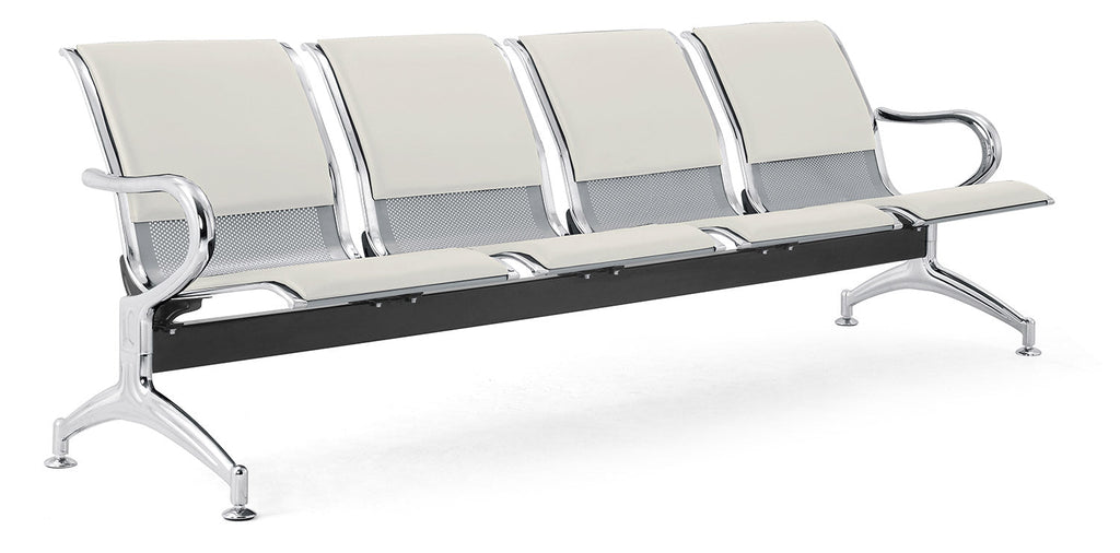 Banc de salle d'attente 4 places pour bureau avec coussin en acier et simili cuir argent/ivoire