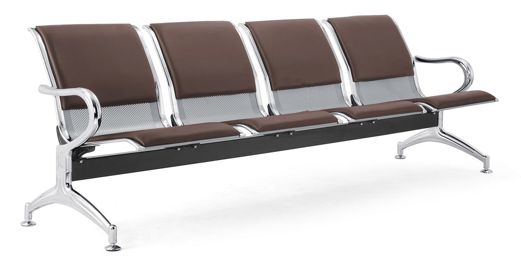 Banc de salle d'attente 4 places pour bureau avec coussin en acier et simili cuir argenté/marron foncé