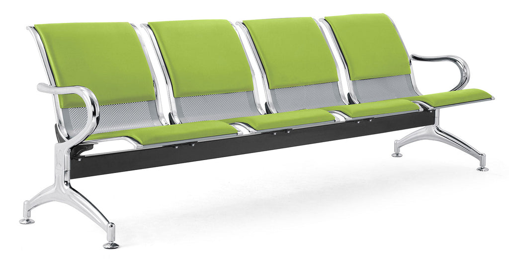 Banc de salle d'attente 4 places pour bureau avec coussin en acier et simili cuir argent/pistache