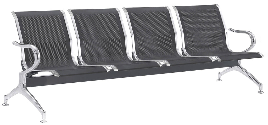 Tosini Banc de Bureau Noir pour Salle d'Attente 4 Places en Acier