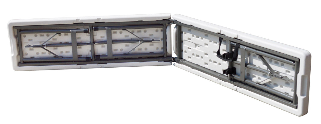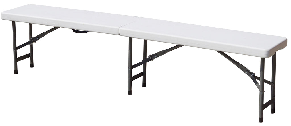Banc pliant avec structure en acier peint Ø 22 mm et plateau en plastique.