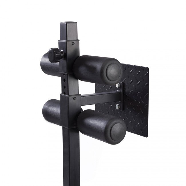 Les coussinets à rouleaux sont extra larges en mousse haute densité avec revêtement en mousse PU et les verrous à rouleaux/chevilles sont réglables verticalement.