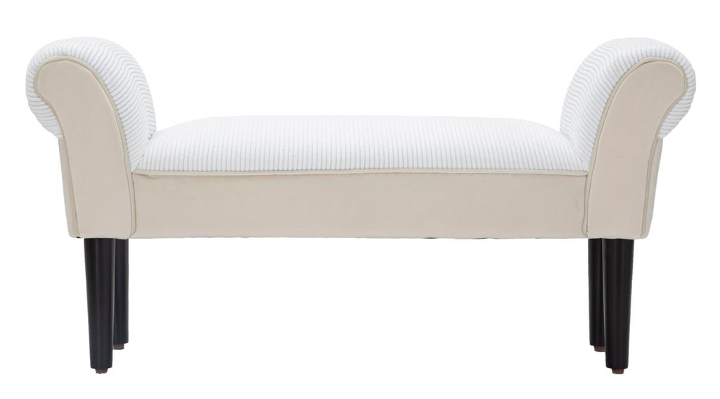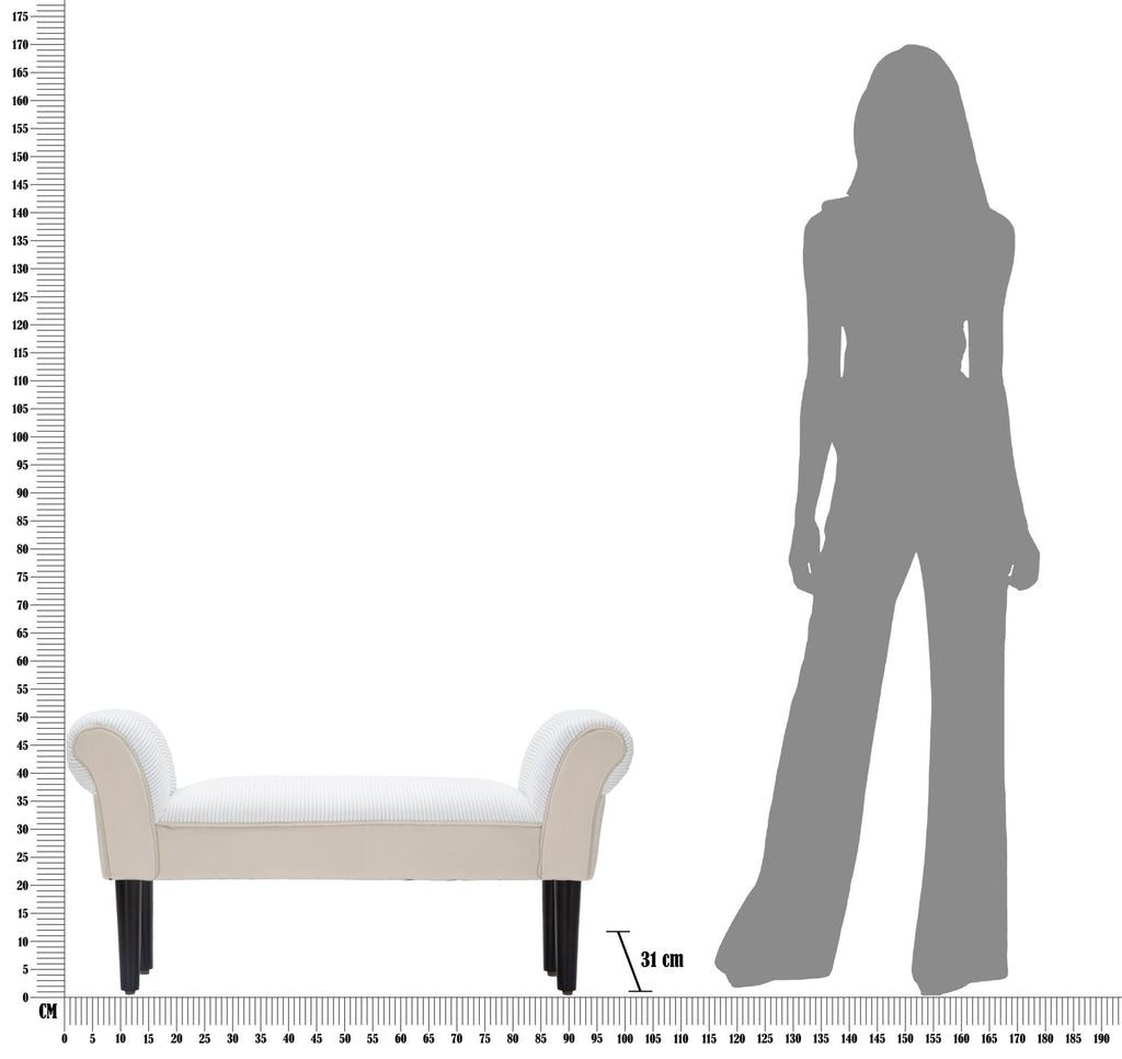 Banc Velours Crème 102x31x51 cm Bois et Polyester Crème et Noir