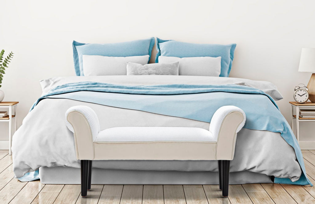 Banc en Velours Crème 102x31x51 cm Bois et Polyester Crème et Noir