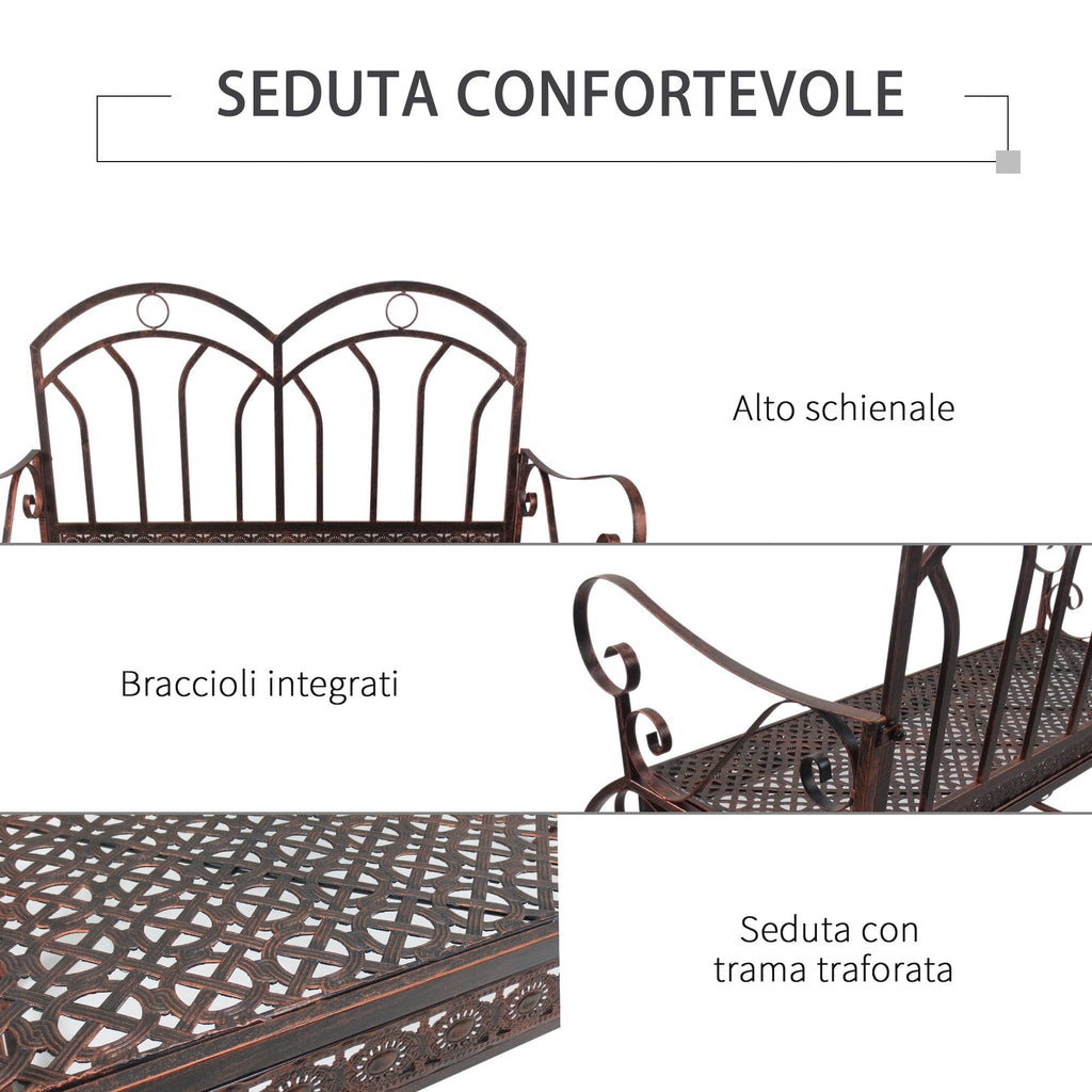 Banc de jardin 2 places 104x75x95,5 cm en métal bronze