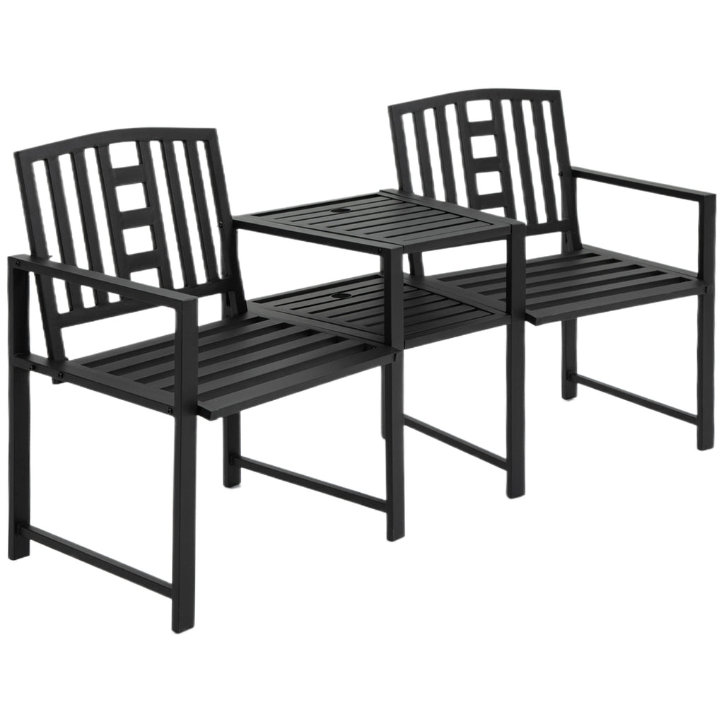 Banc de jardin 2 places 165x53,5x85,5 cm avec table en métal noir