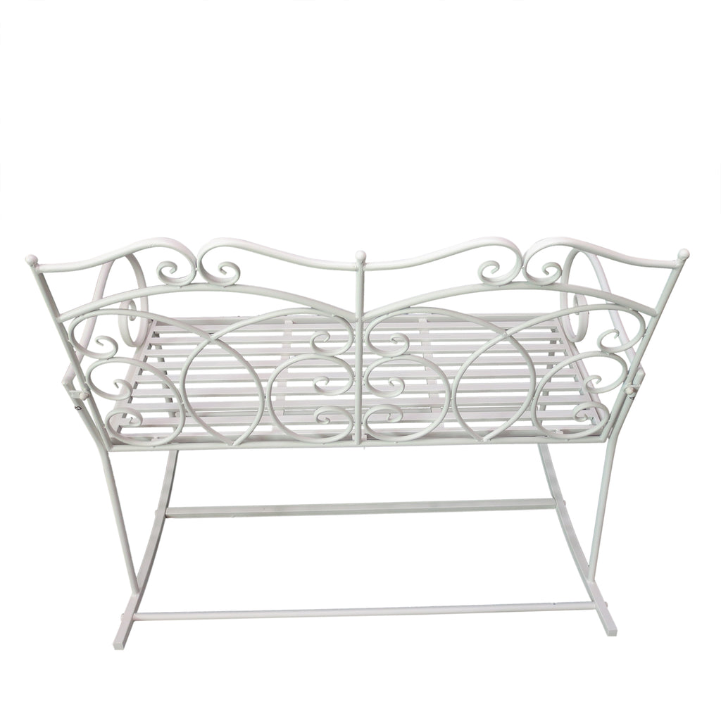 Banc de jardin à bascule 2 places en fer blanc Shabby 102x74,5x78 cm