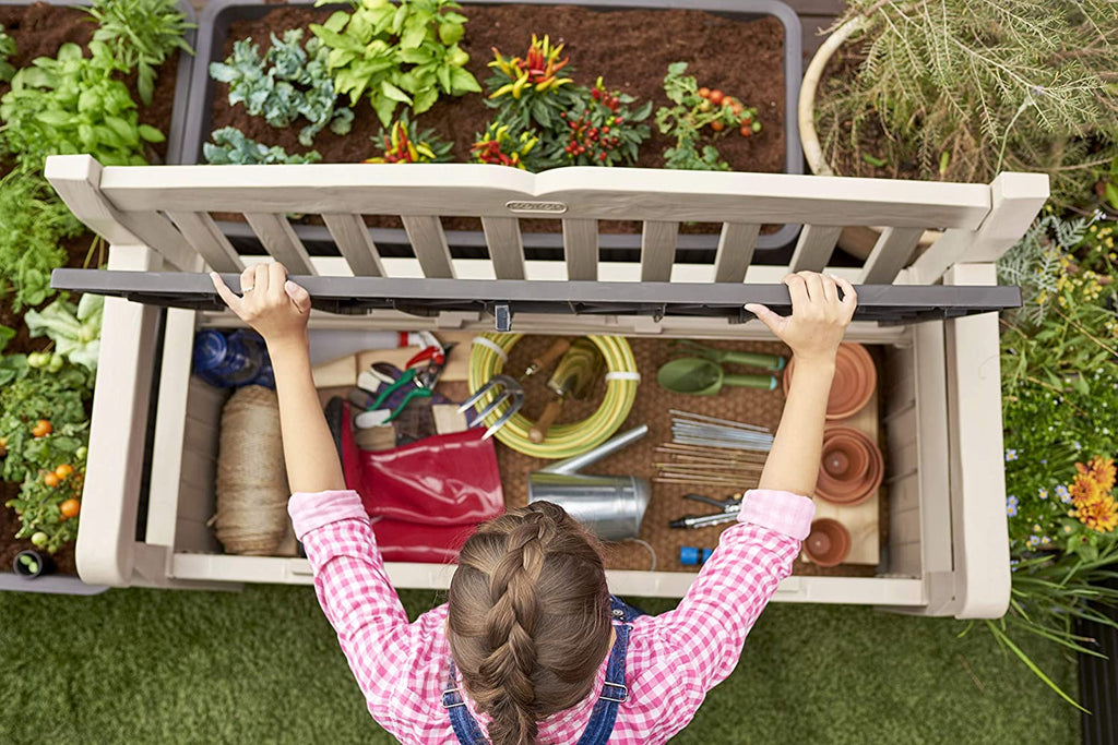 Banc conteneur de jardin 140x60x84 cm en résine Keter Eden Bench Beige