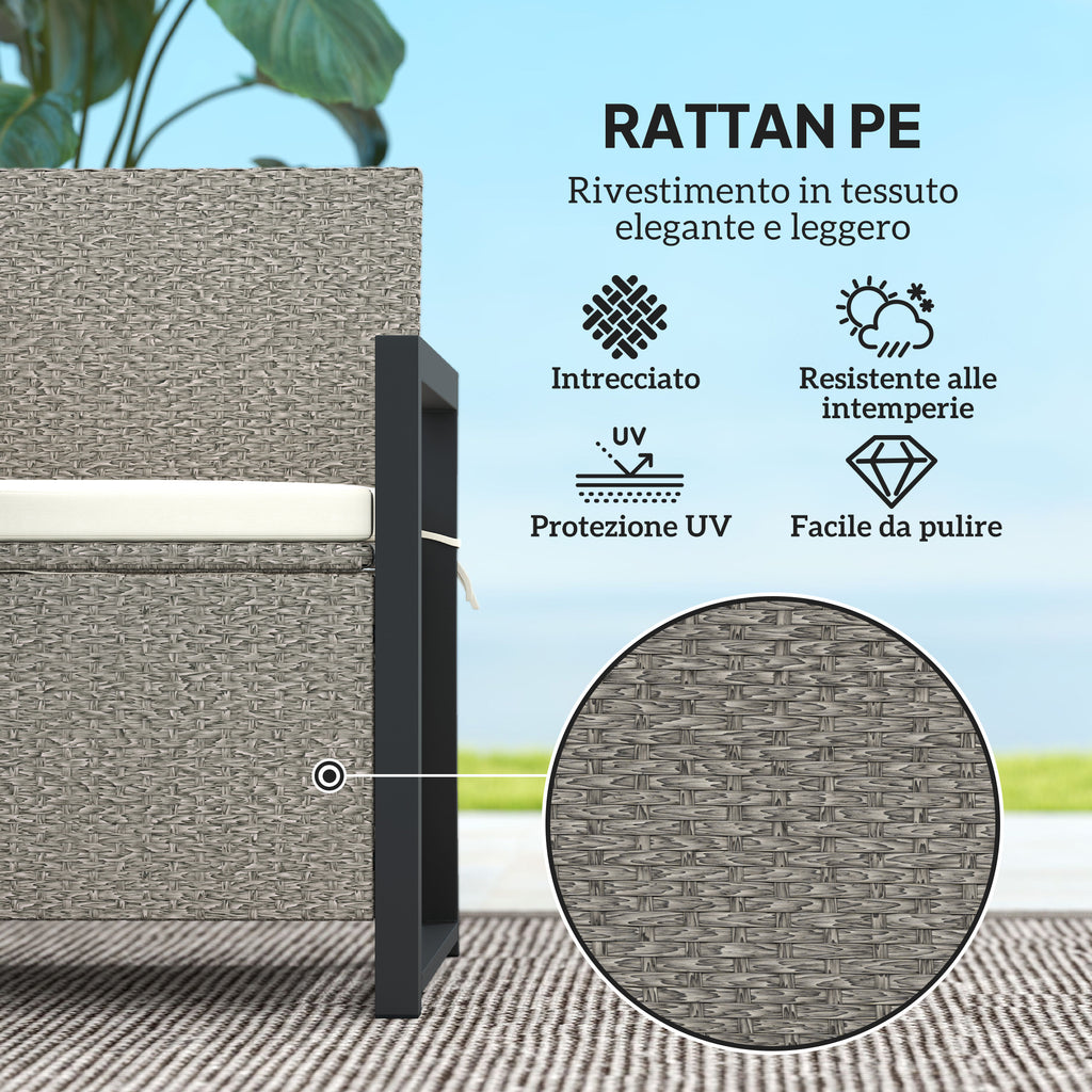 - DESIGN 2-IN-1: Questa panchina da esterno in rattan dal design 2-in-1 è perfetta per accogliere due persone e dotata di un vano integrato per riporre oggetti. Utilizza una copertura per mobili da esterno per una maggiore protezione