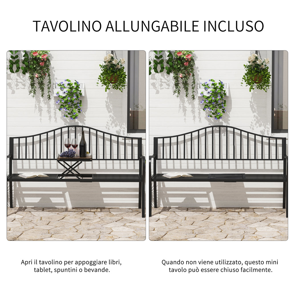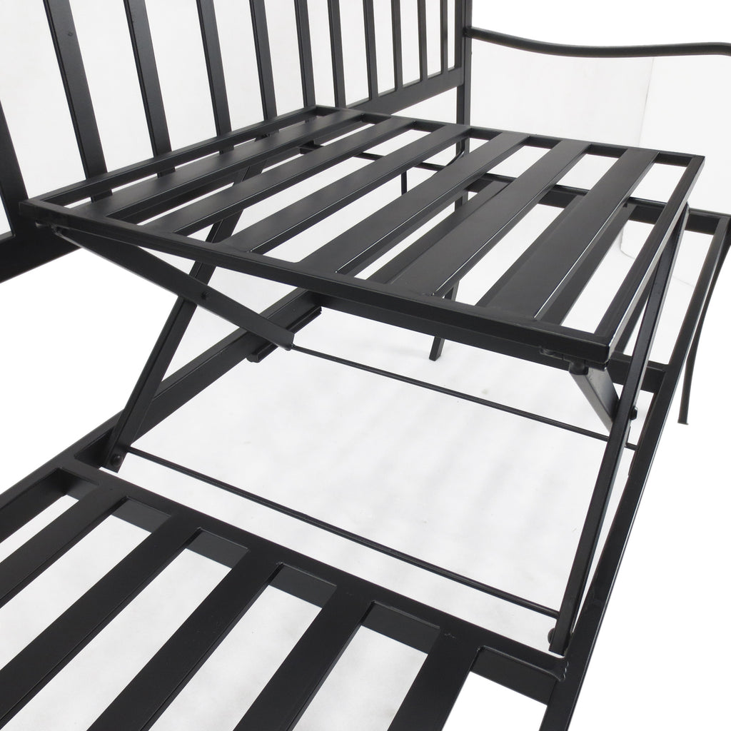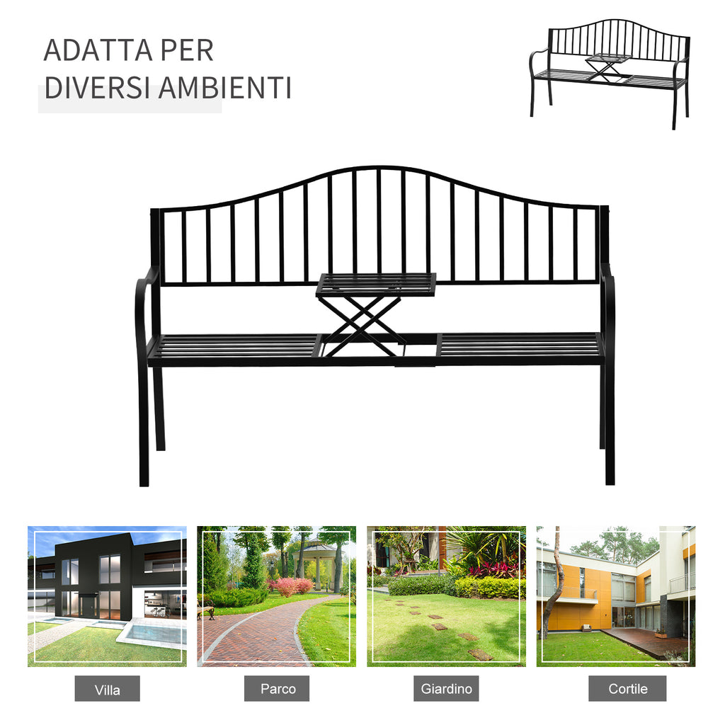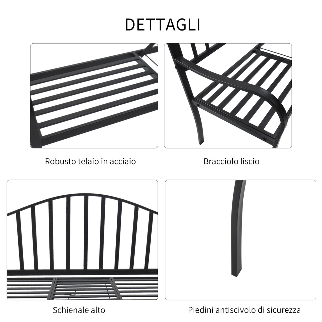 Banc de Jardin 2 Places en Fer Forgé avec Bandes Noires