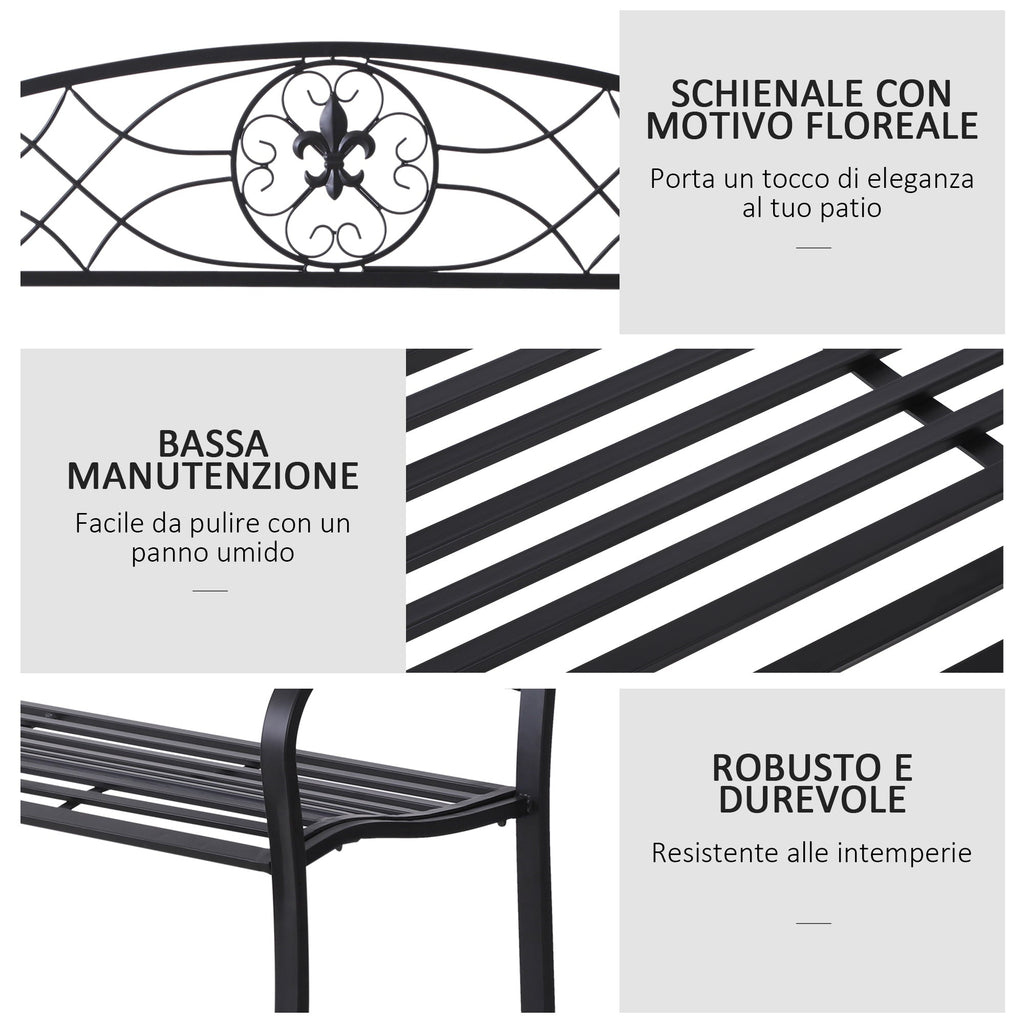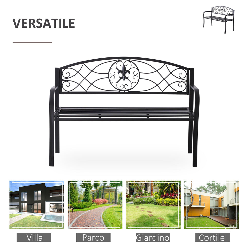 Banc de Jardin 2 Places en Fer Forgé Noir