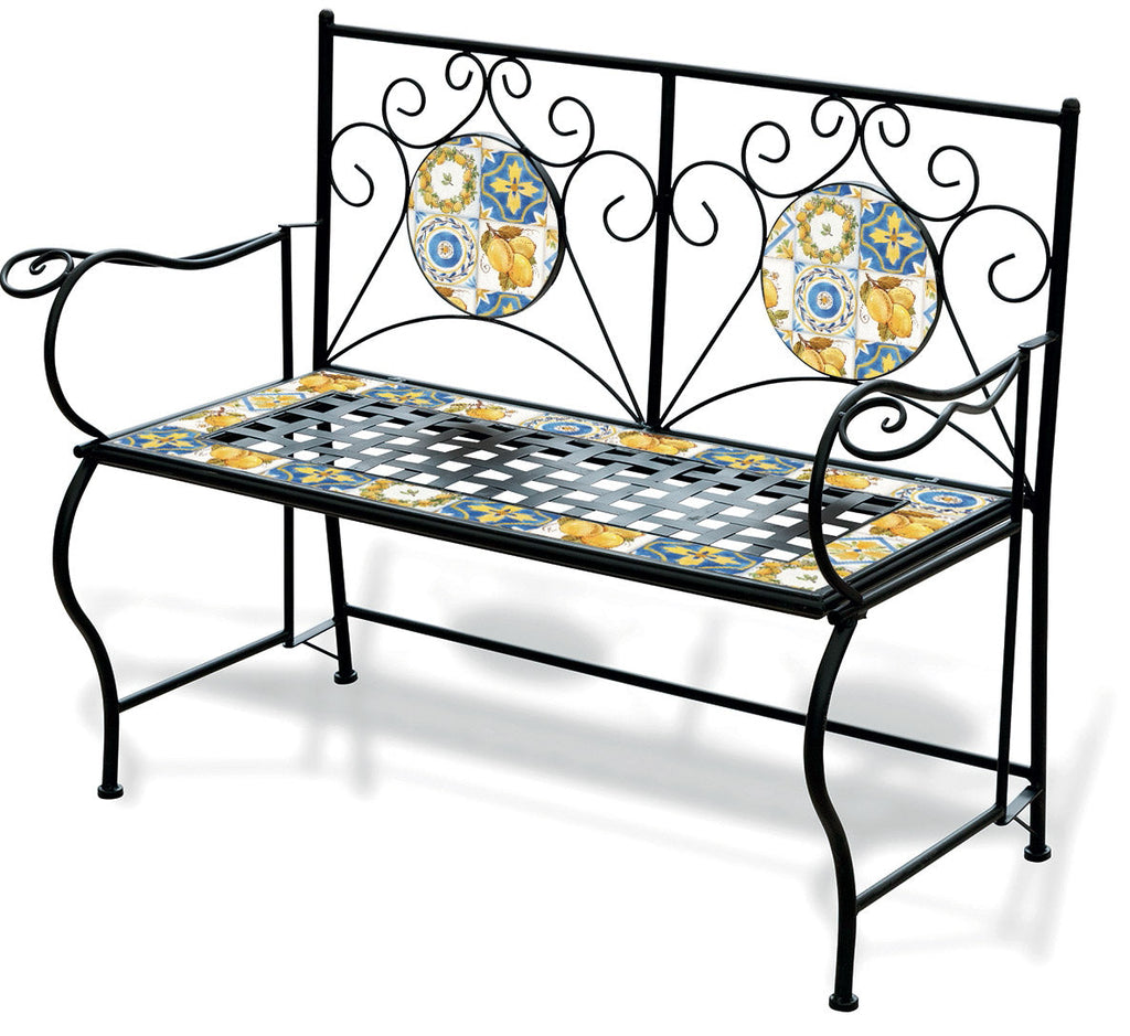 Banc de Jardin 2 Places en Fer avec Mosaïque Noire Toscane Soriani