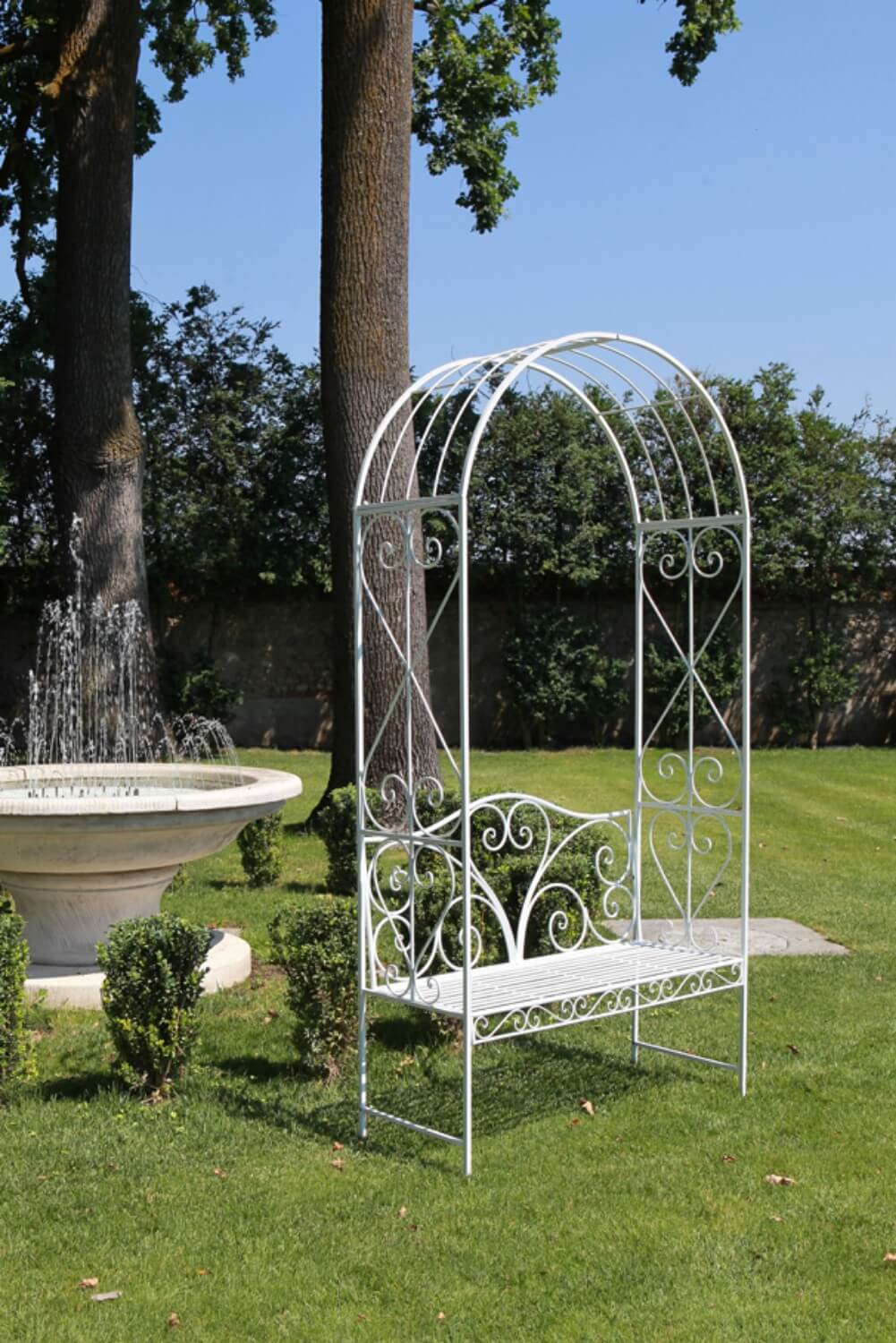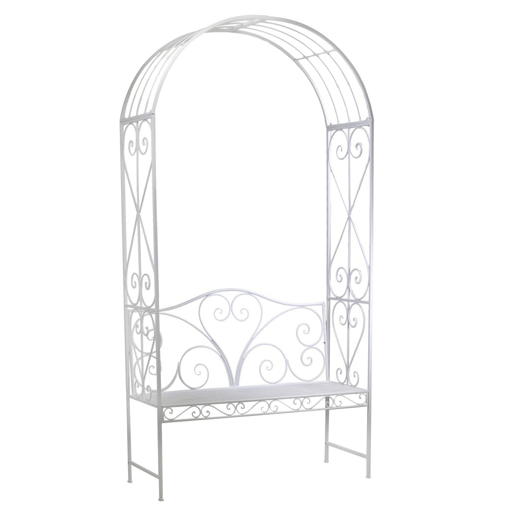 Banc de jardin en fer avec arche 116x47H230cm Viareggio Blanc