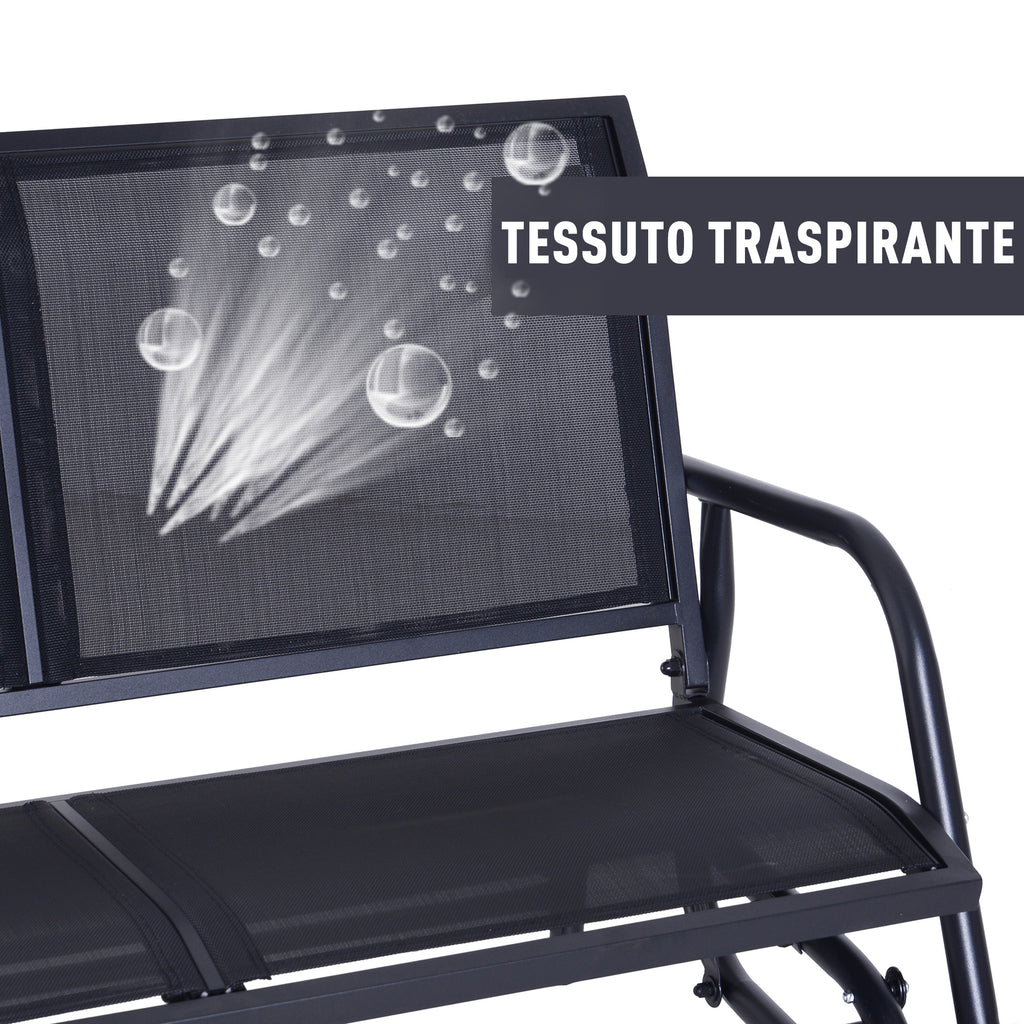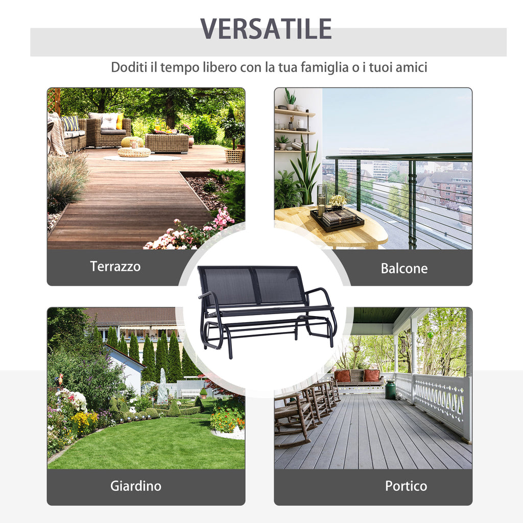 Banc de jardin à bascule 2 places en métal gris 123x70x87 cm