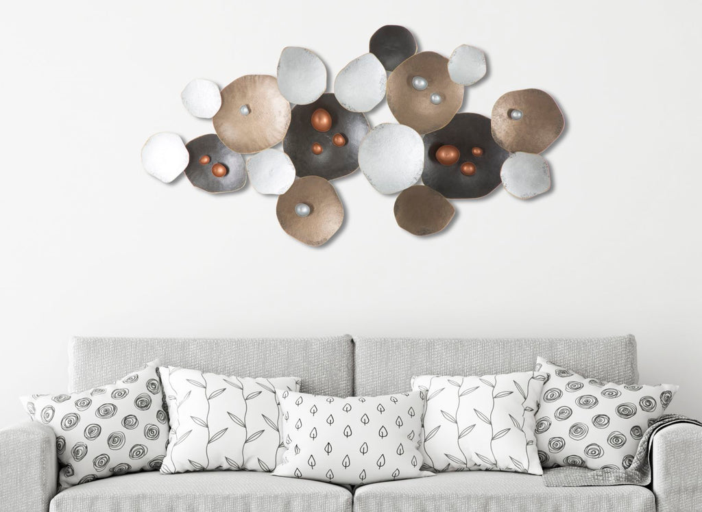 Panneau métallique abstrait. Les panneaux 3D sont la nouvelle tendance en matière de décoration murale. Le métal se décline en formes géométriques, végétales ou animales qui donnent une allure glamour et surprenante à n'importe quelle pièce.
