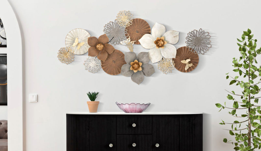 • Il pannello da muro Broty è un'opera decorativa 3D con elementi naturali e colori delicati