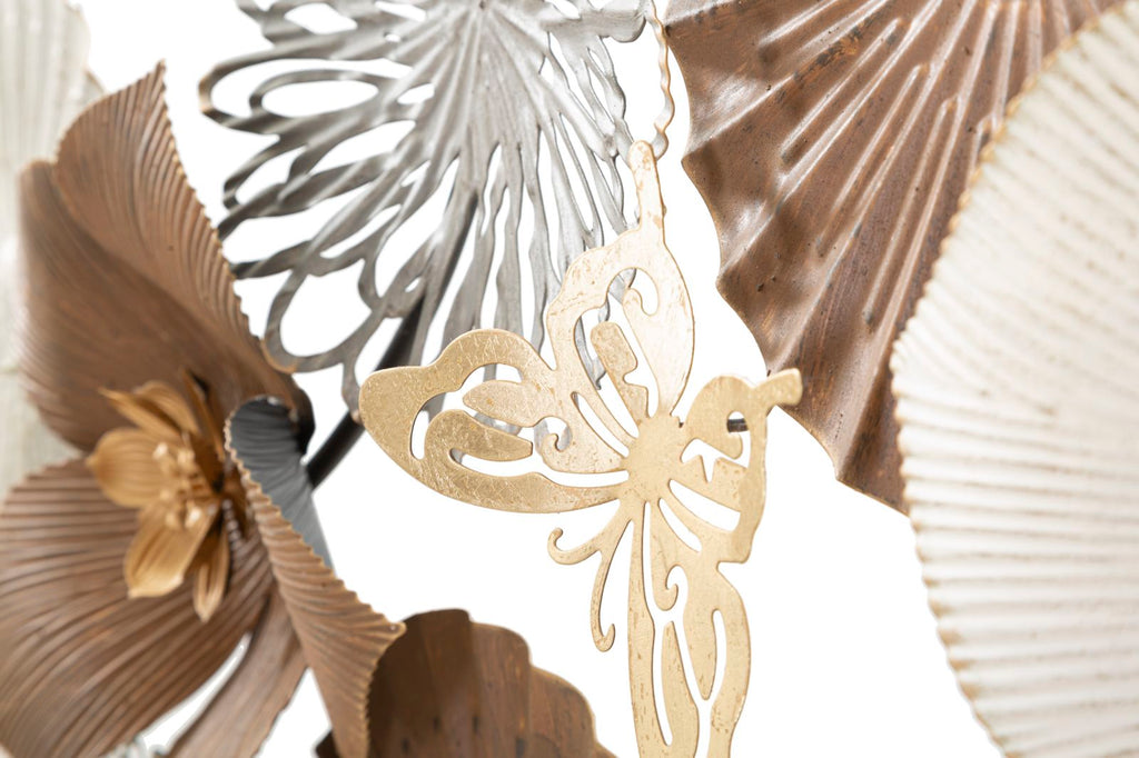 Il pannello decorativo 3D da parete è un'opera incantevole che unisce elementi naturali come fiori, foglie e forme astratte. I colori tenui e soffusi creano un'atmosfera dolce e rilassante, mentre le farfalle dorate impreziosiscono ulteriormente il design. Questo pezzo d'arte trasforma una semplice parete in un angolo accogliente e elegante, aggiungendo un tocco di magia e fascino alla stanza.