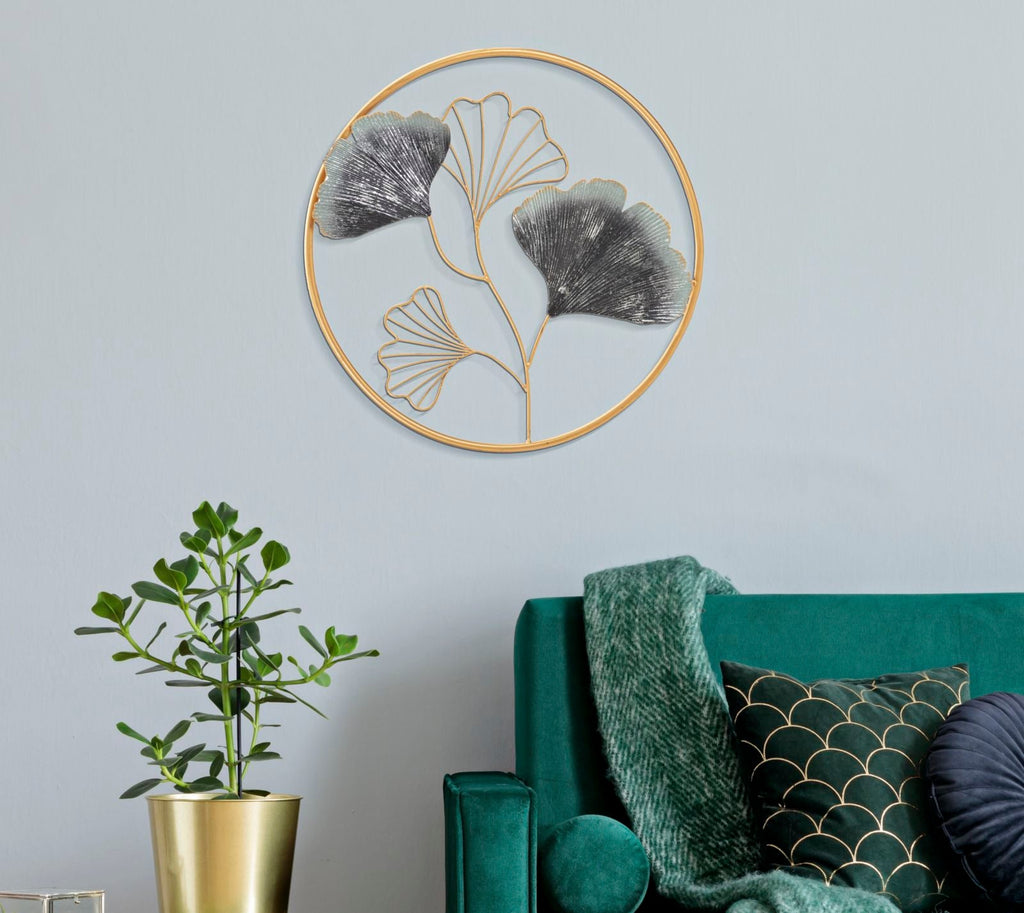 • Pannello da muro Flower Simple: design circolare con foglie raffinate e colori pastello abbinati all'oro