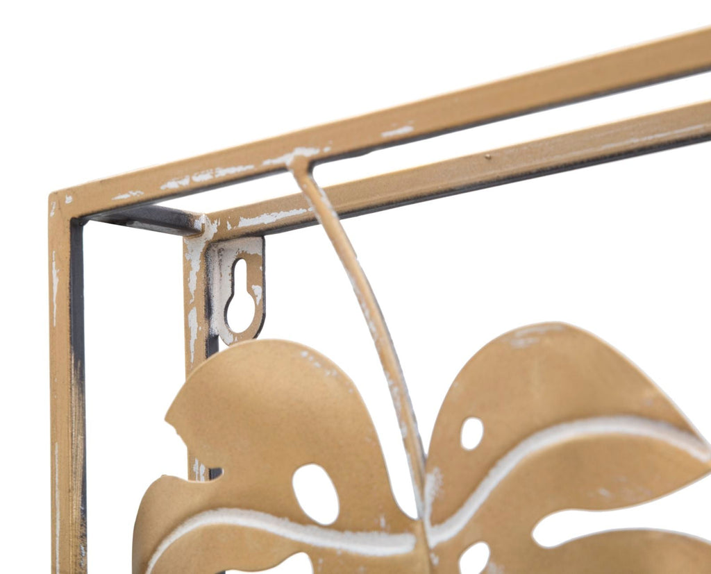 • Pannello decorativo 3D in metallo dorato con foglie racchiuse in struttura rettangolare