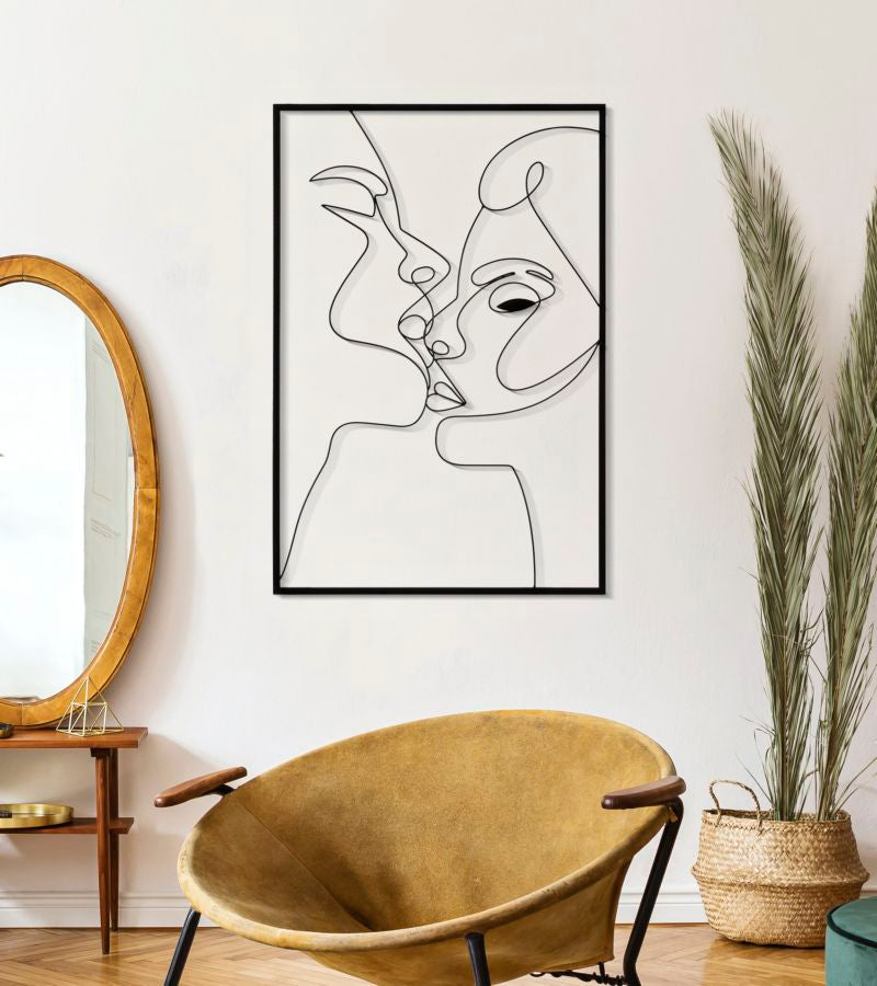 Il pannello decorativo 3D da parete rappresenta due volti che si baciano, presentando tratti semplici ed essenziali. L'uso del rilievo aggiunge profondità e dinamicità alla composizione. I due volti sono incorniciati da una forma rettangolare, che conferisce un'ulteriore eleganza e definizione al decoro. Questo pannello è un'opzione perfetta per aggiungere un tocco artistico contemporaneo alle pareti di qualsiasi ambiente.