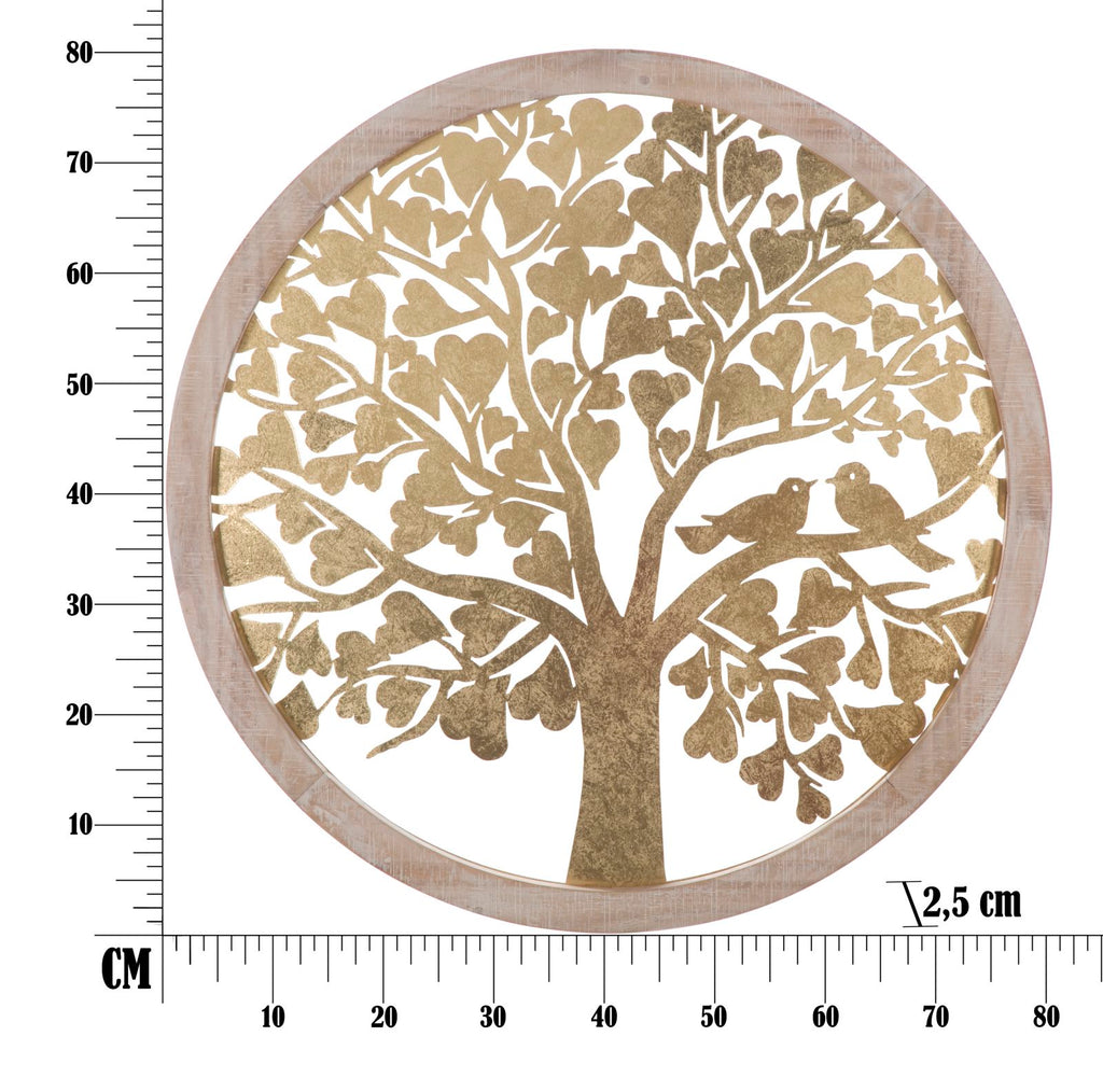 Panneau mural pour la pourriture des arbres dorés. Ø80x2,5 cm en Fer et MDF Or et Marron Clair