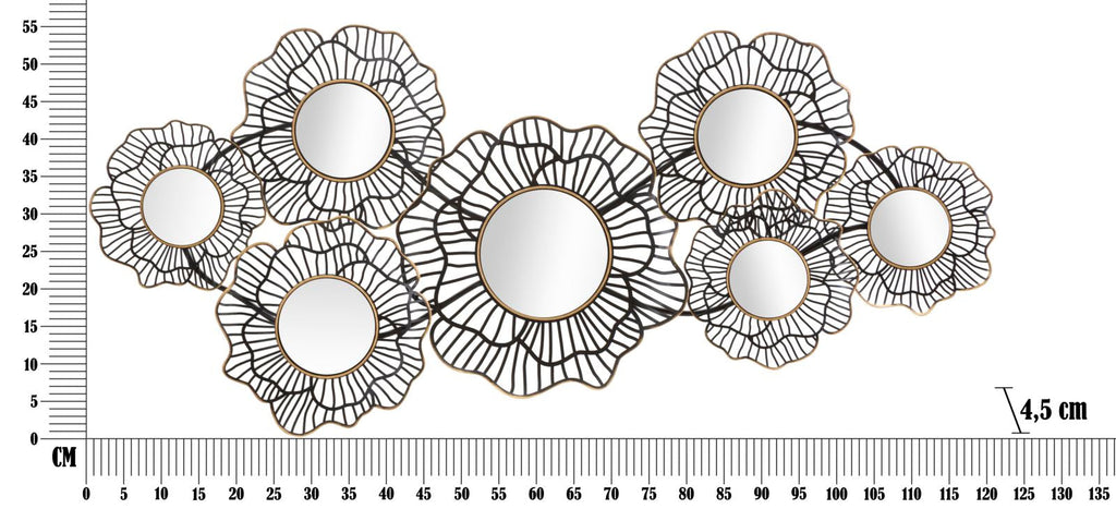 - Pannello da muro di Osaka con specchi in ferro: fiori semplici, effetto luminoso e decorativo