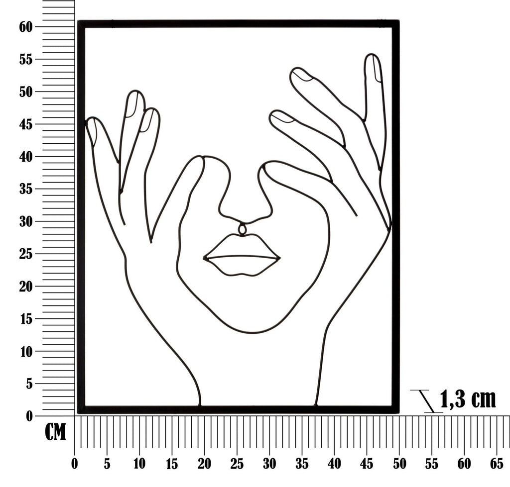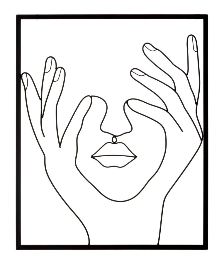 • Pannello decorativo 3D, rappresenta mani e volto con linee semplici