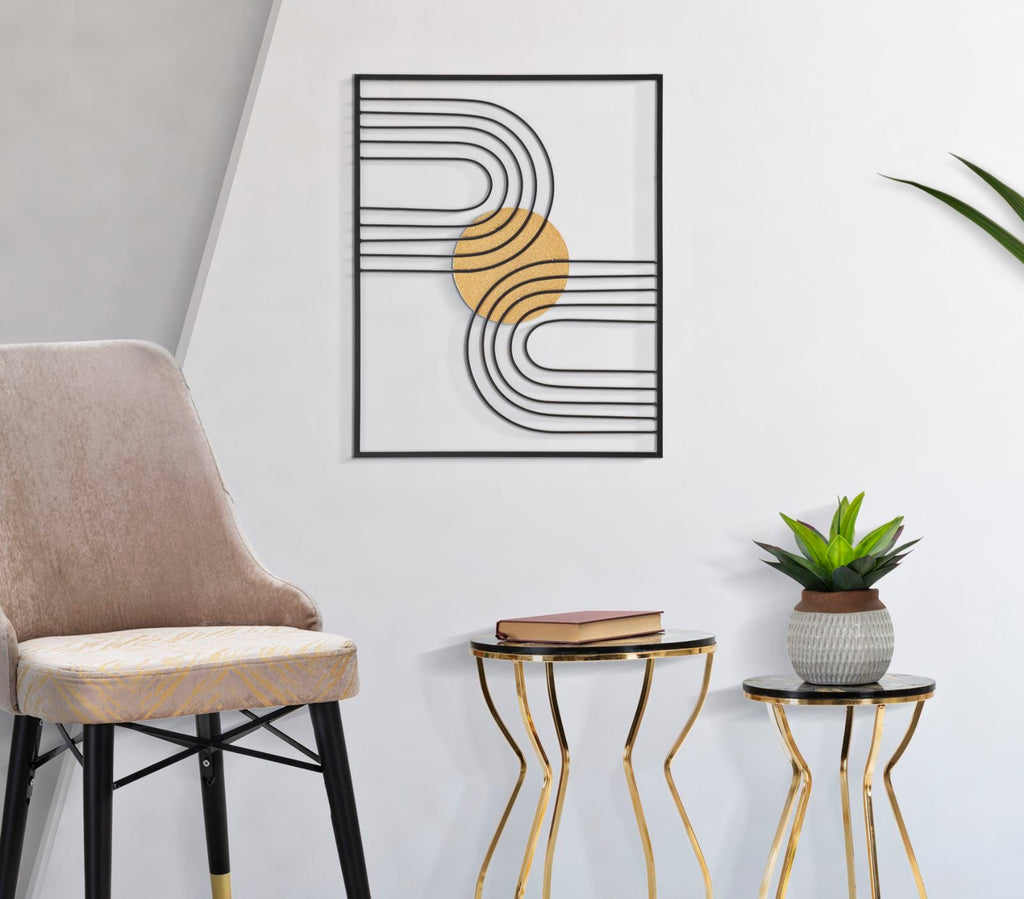 - Pannello decorativo 3D con disegni geometrici e elemento dorato rotondo