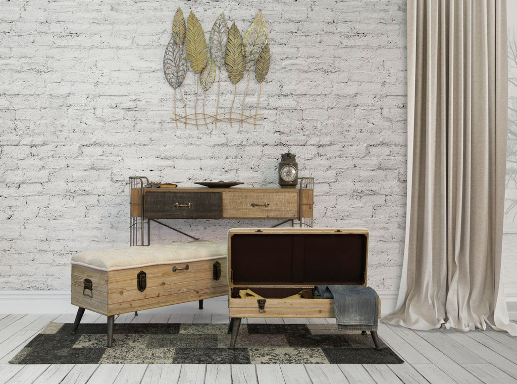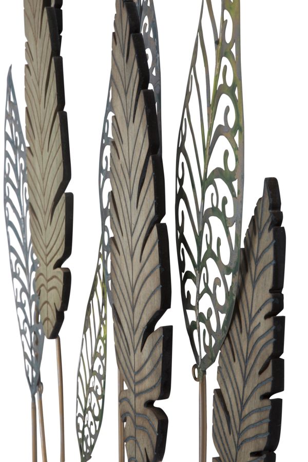 Panneau et Feuilles de Bois 75x2,5x87 cm en MDF Fer et Or et Argent