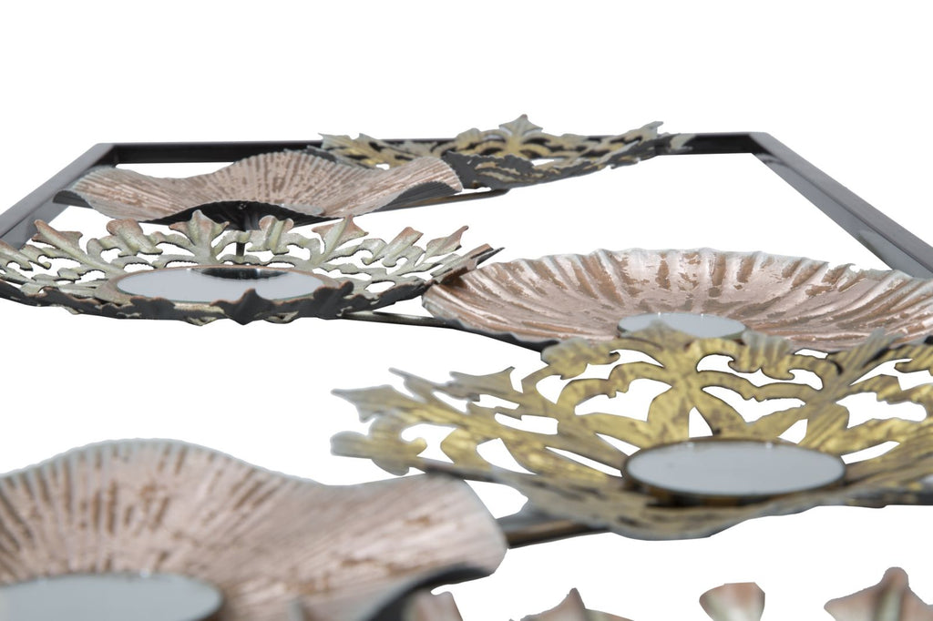 Panneau métallique rectangulaire avec décorations abstraites. Les panneaux 3D sont la nouvelle tendance pour décorer les murs. Le métal laqué se décline en formes géométriques, végétales ou animales qui donnent une allure glamour et surprenante à tout environnement