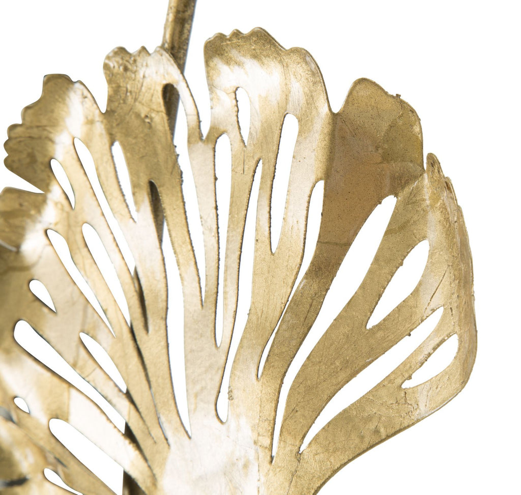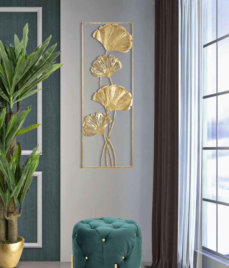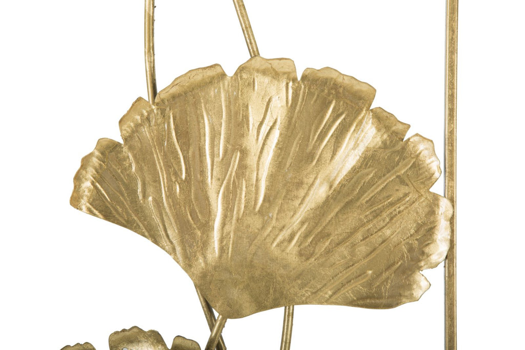 Panneau rectangulaire en métal doré à feuilles. Les panneaux 3D sont la nouvelle tendance pour décorer les murs. Le métal laqué se décline en formes géométriques, végétales ou animales qui donnent une allure glamour et surprenante à tout environnement