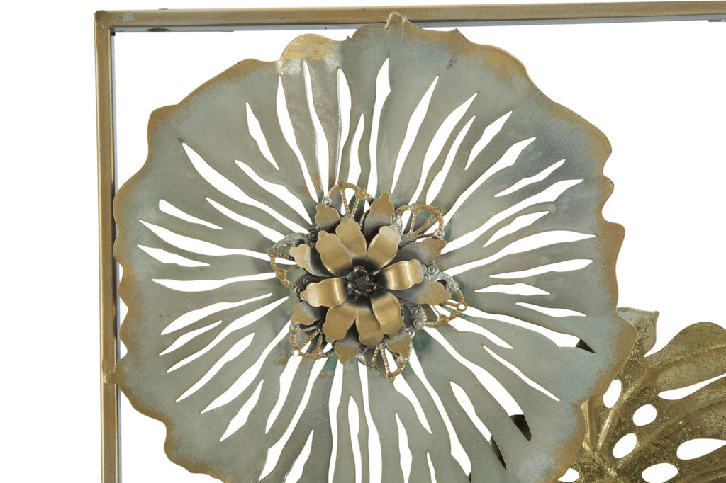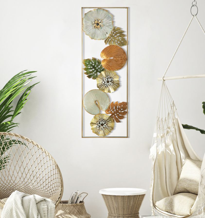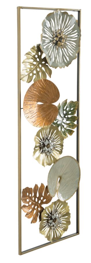 Panneau métallique rectangulaire avec feuilles. Les panneaux 3D sont la nouvelle tendance pour décorer les murs. Le métal laqué se décline en formes géométriques, végétales ou animales qui donnent une allure glamour et surprenante à tout environnement