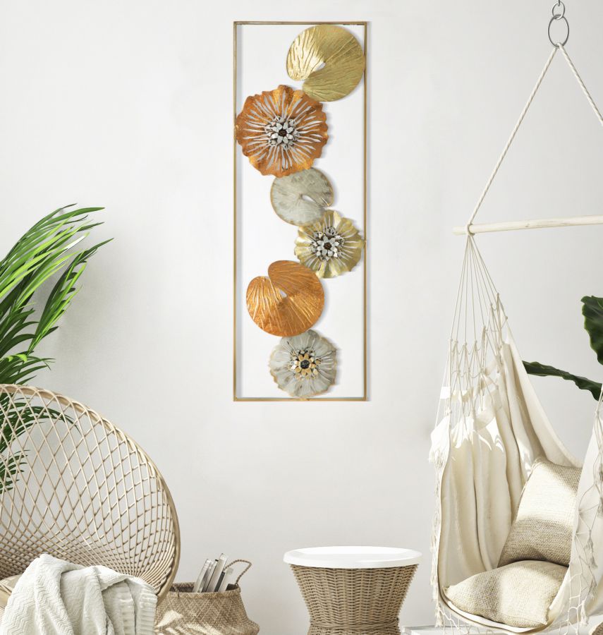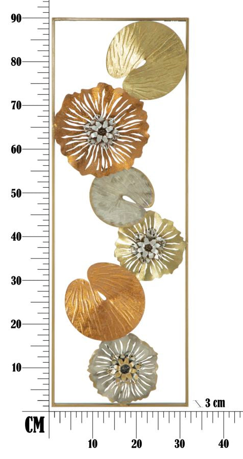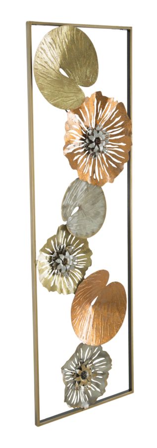 Panneau métallique rectangulaire avec feuilles. Les panneaux 3D sont la nouvelle tendance pour décorer les murs. Le métal laqué se décline en formes géométriques, végétales ou animales qui donnent une allure glamour et surprenante à tout environnement