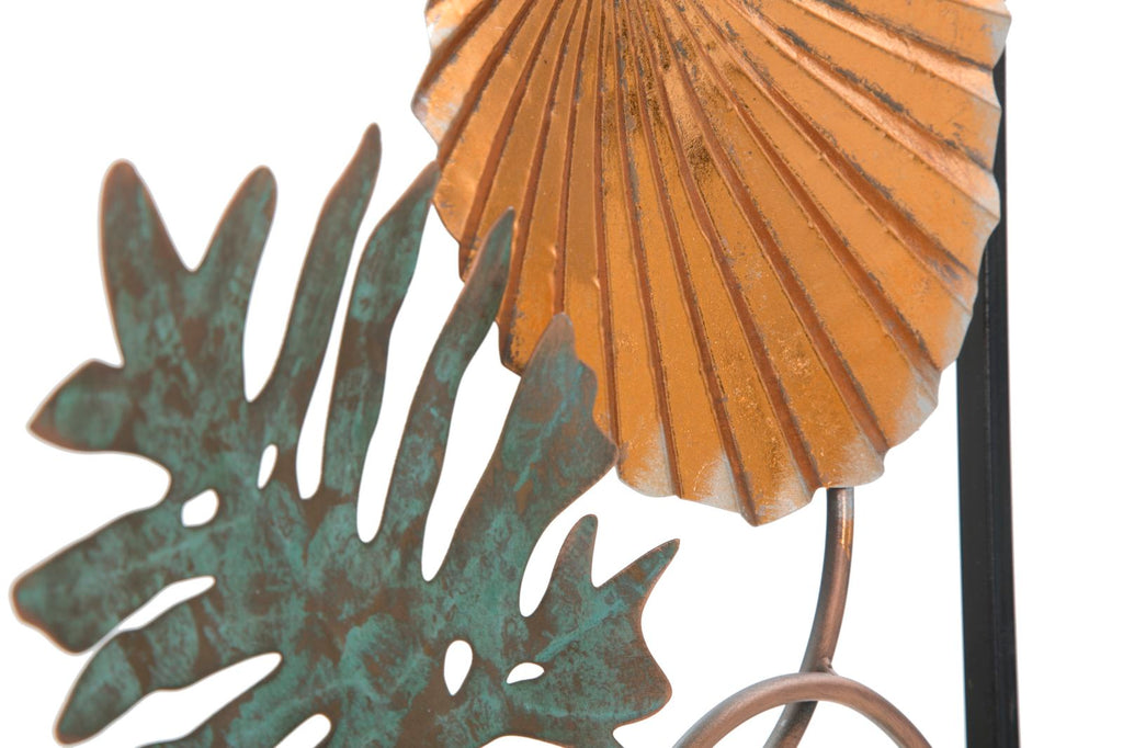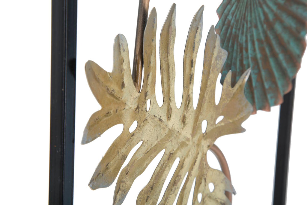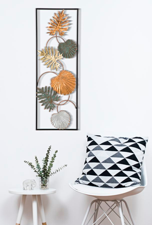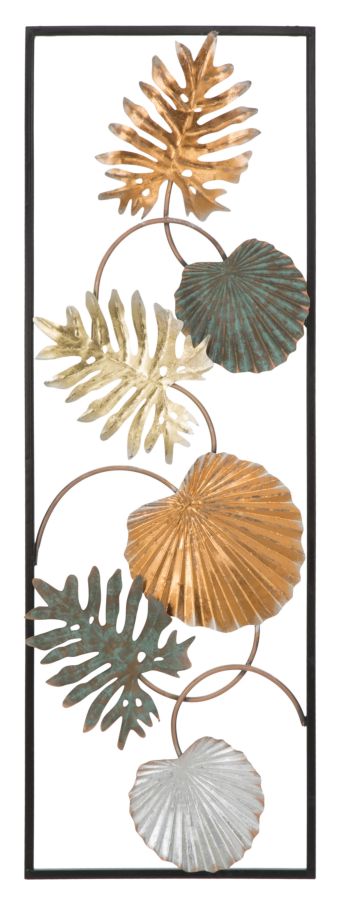 Panneau rectangulaire avec feuilles en métal. Les panneaux 3D sont la nouvelle tendance en matière de décoration murale. Le métal laqué se décline en formes géométriques, végétales ou animales qui donnent une allure glamour et surprenante à n'importe quelle pièce.