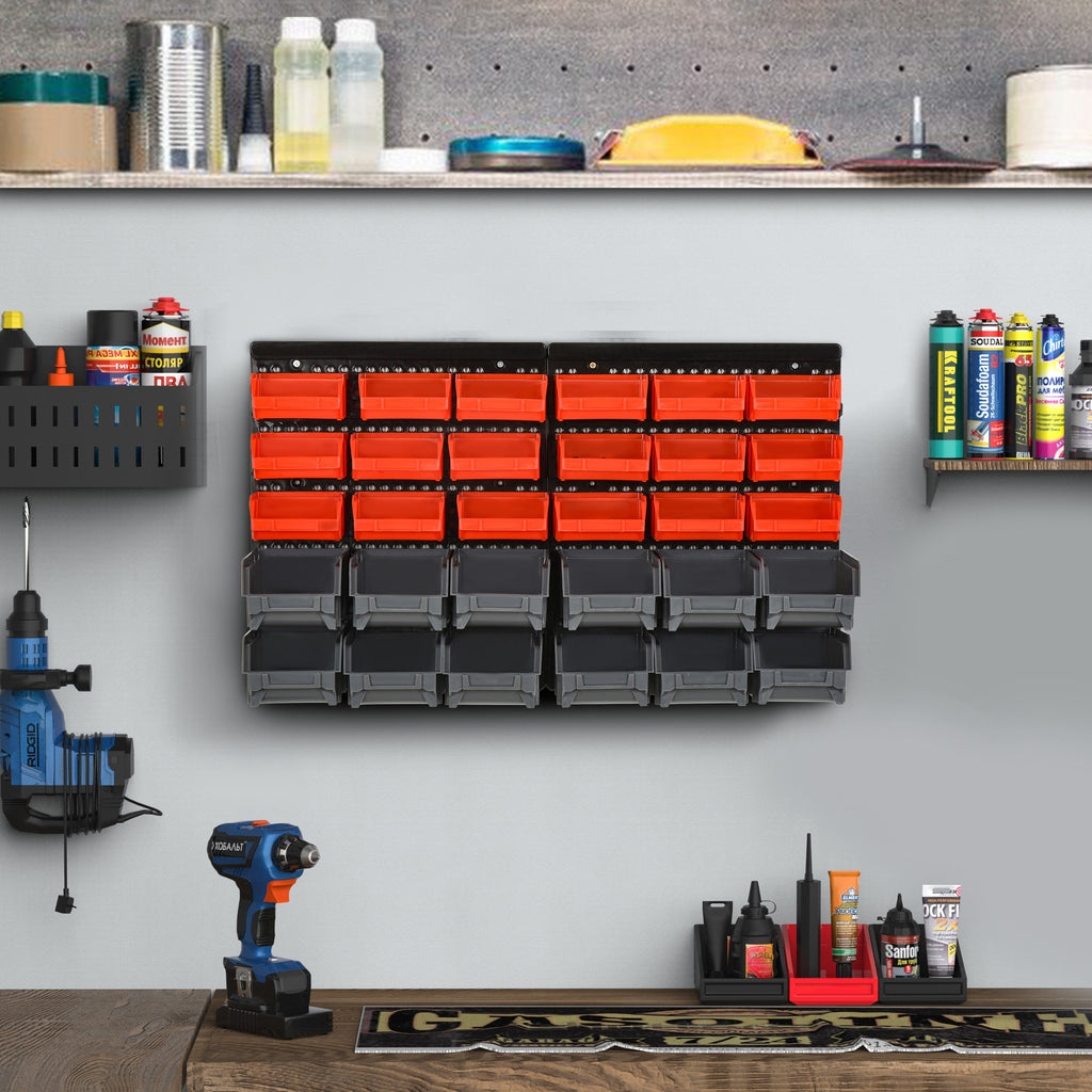 - Avec 2 tablettes et 30 boîtes de 2 tailles différentes, idéales pour les ateliers, les garages et les postes de travail à domicile