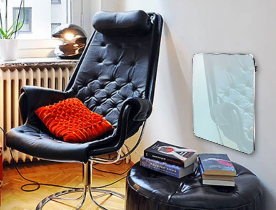 Panneau chauffant à fixer au mur, finition élégante en verre blanc, construction robuste au design ultra léger et fin. Fil chauffant en silicone.