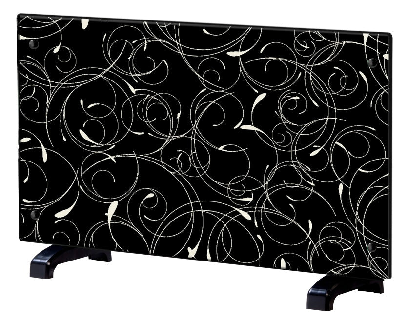 Panneau chauffant Arabesque pour salon, mobile pour devenir panneau chauffant pour chambre. Fabriqué en acier avec une façade en verre trempé de 2000 W pour chauffer des pièces d'environ 30 m2. Peut être positionné au sol ou au mur.