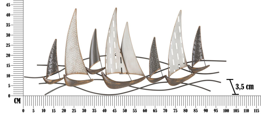Panneau métallique décoratif 3D représentant des voiliers naviguant sur la mer. Une touche de liberté pour chaque environnement.