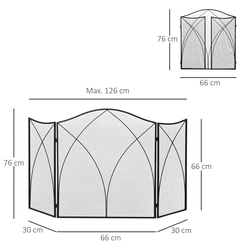 Parascintille con Antine 126x2x76 cm Pieghevole a 3 Pannelli in Metallo Nero
