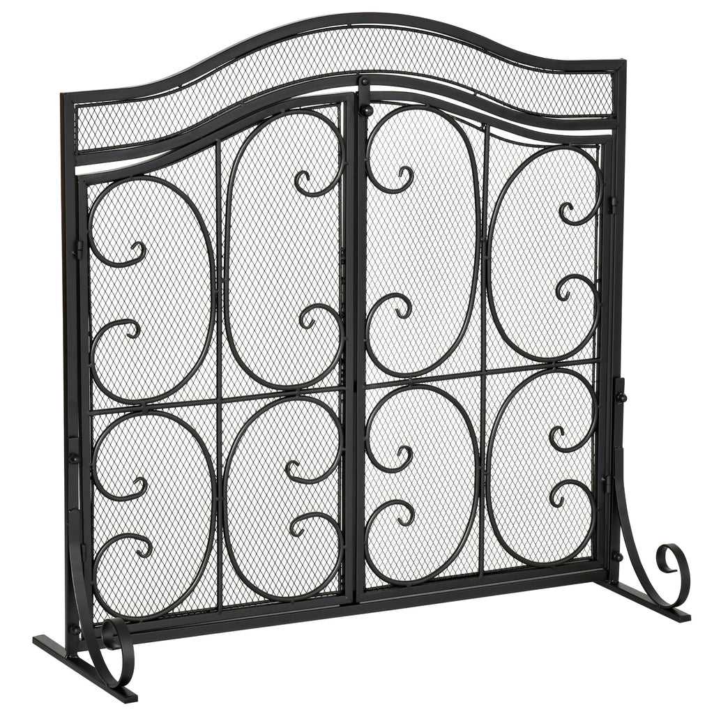 Pare-étincelles en métal noir avec portes 88x30x89 cm