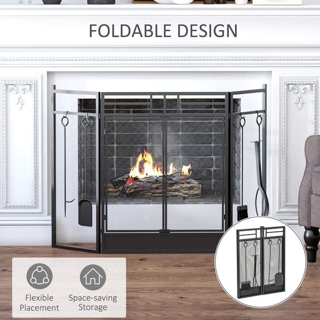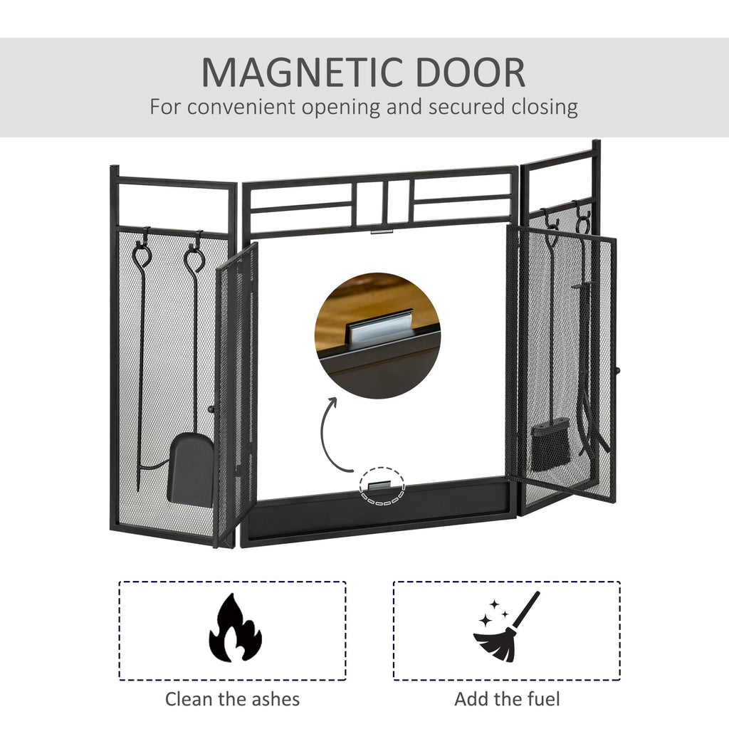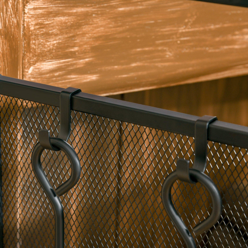 - AVEC PORTE ET ACCESSOIRES : Ce pare-étincelles possède une porte à fermeture magnétique et comprend 4 accessoires (balai, tisonnier, pelle et pince) ainsi que 4 crochets pour les accrocher.