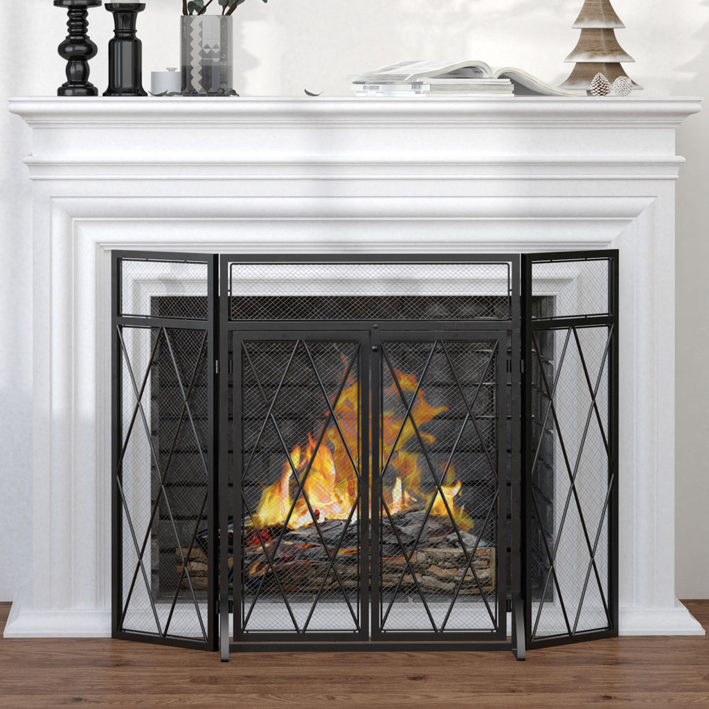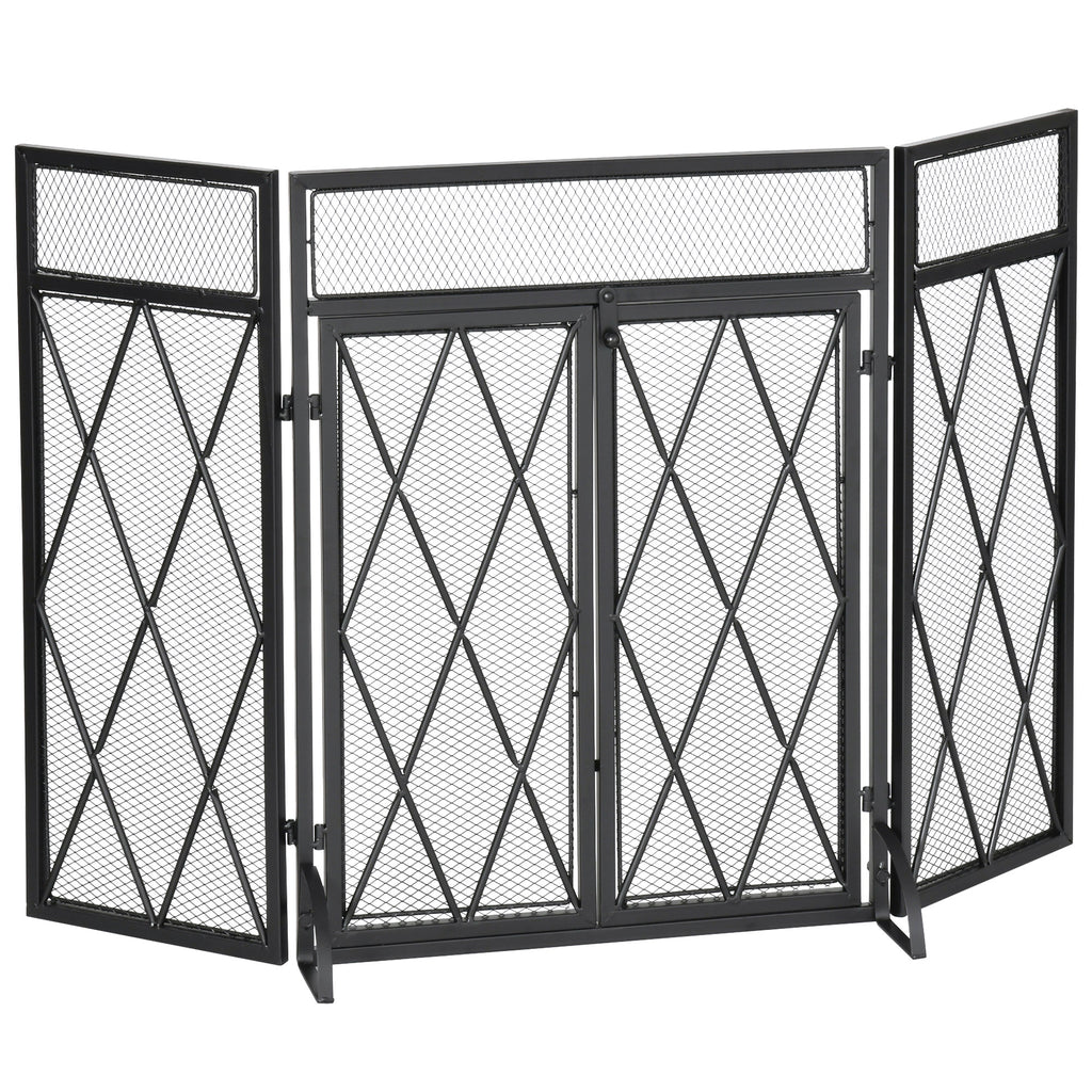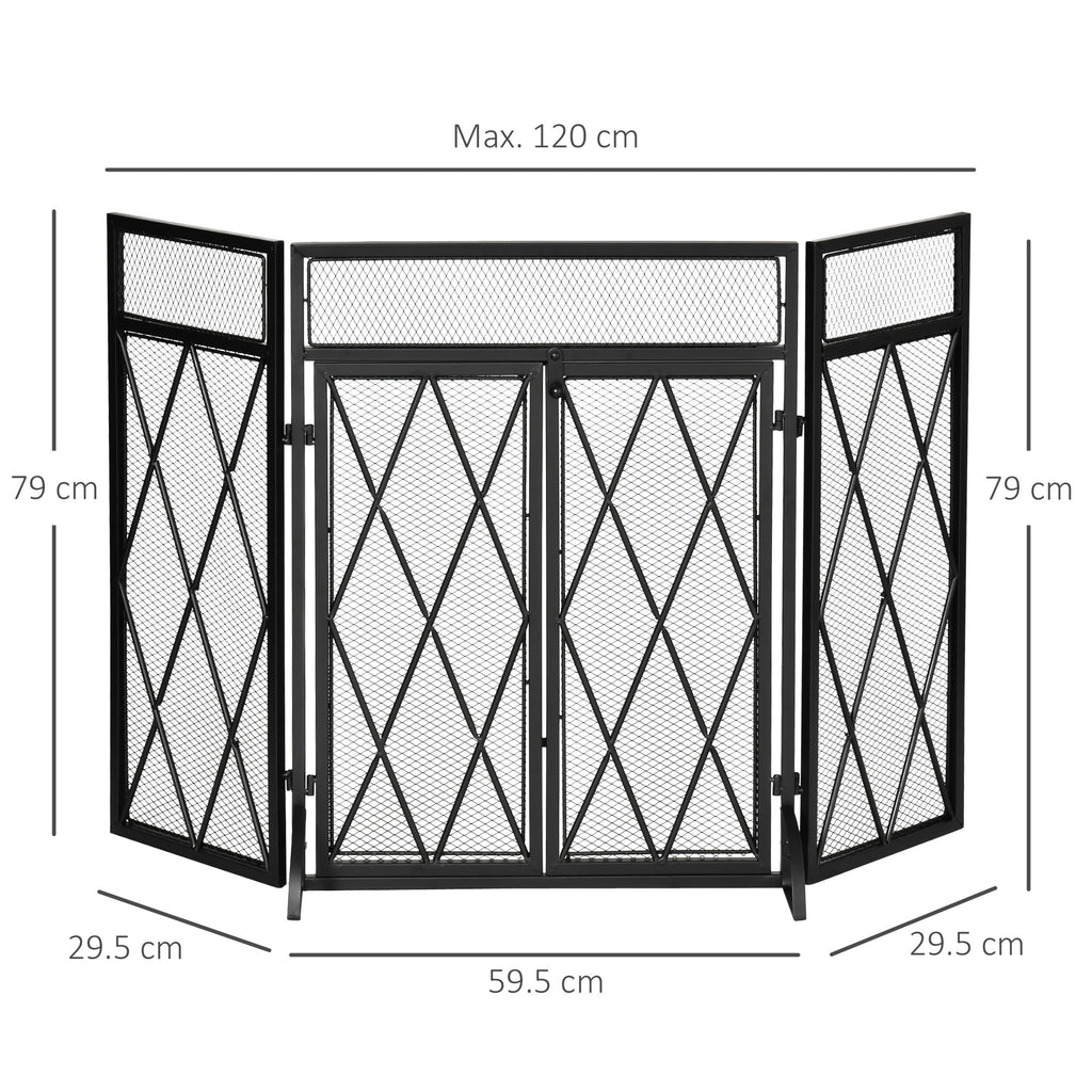 Pare-étincelles pliable avec portes 120x11,5x79 cm en métal noir
