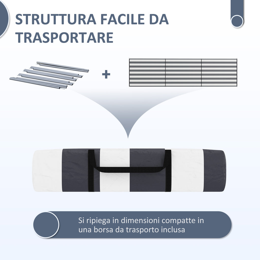 Paravento da Spiaggia Pieghevole Frangivista 540x150 cm in Poliestere con Barre in Acciaio Grigio
