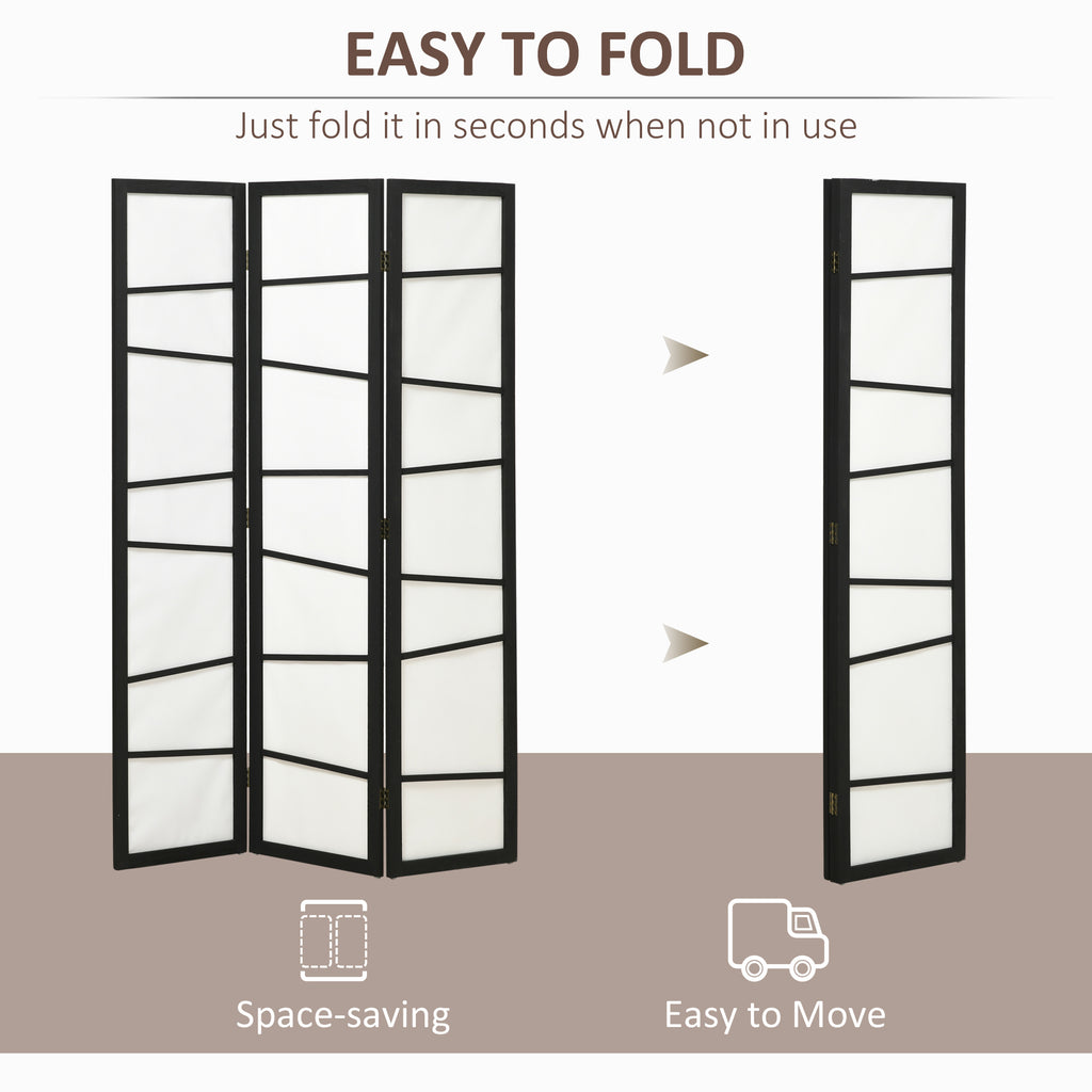 Paravento Separè 3 Pannelli 135x170 cm in Legno Nero e Bianco