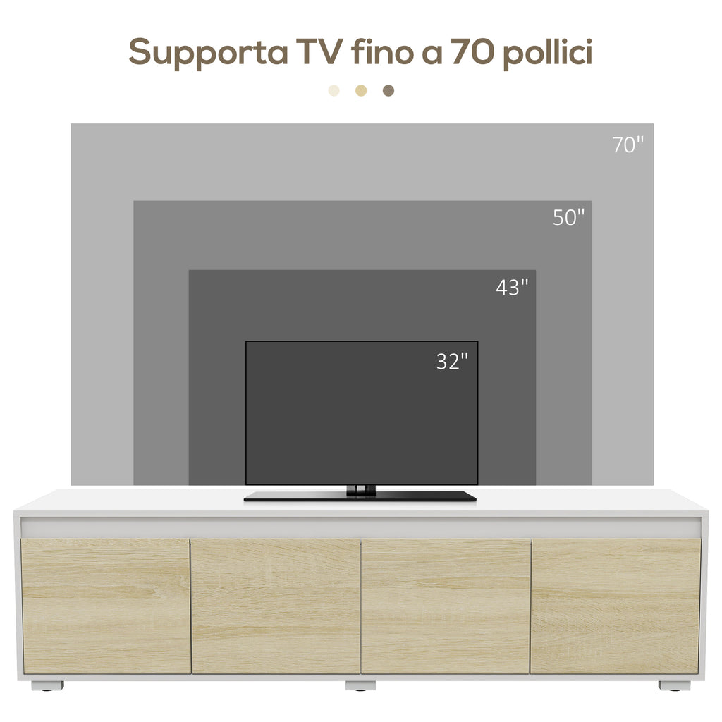 Parete Attrezzata 2 Pezzi Mobile TV max 70” e Mobile Multiuso da Parete in Truciolato Bianco e Legno Naturale