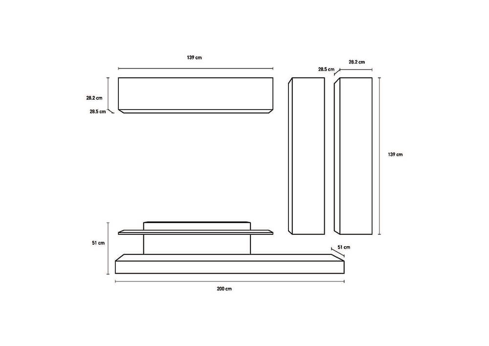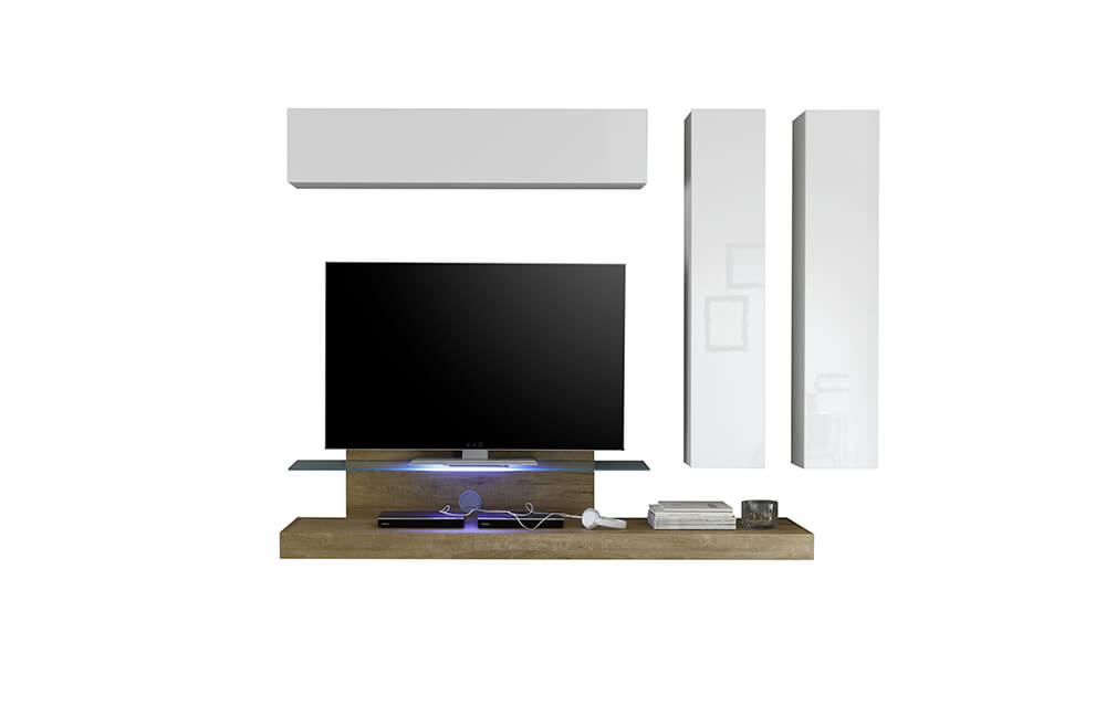 Meubles de salon muraux équipés de 4 meubles suspendus Les éléments individuels peuvent être positionnés dans une position différente de l'image en fonction de vos goûts Série TFT CubeCaractéristiques: