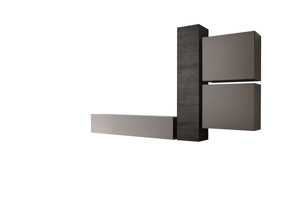 Mobilier de Salon Mural Équipé Avec 4 Meubles Suspendus 169x244x31cm TFT Cube Gris Mat et Chêne Wengè