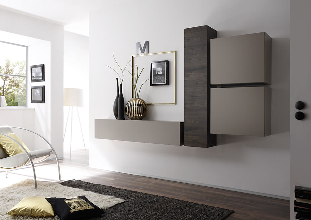 Meubles de salon muraux équipés de 4 meubles suspendus Les éléments individuels peuvent être positionnés dans une position différente de l'image en fonction de vos goûts Série TFT CubeCaractéristiques: