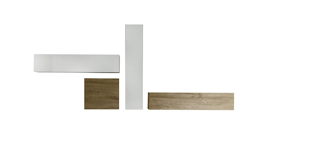 Meubles de salon muraux équipés de 4 meubles suspendus Les éléments individuels peuvent être positionnés dans une position différente de l'image en fonction de vos goûts Série TFT CubeCaractéristiques:
