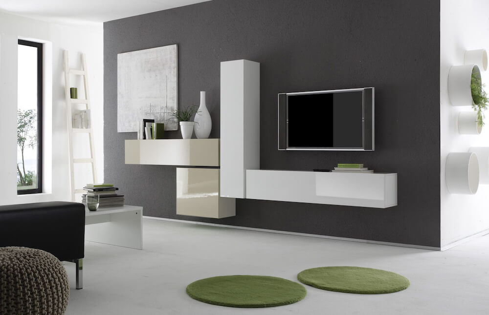 Mobilier de Salon Mural Equipé 4 Meubles Suspendus 307x31x165cm TFT Boost Blanc et Beige